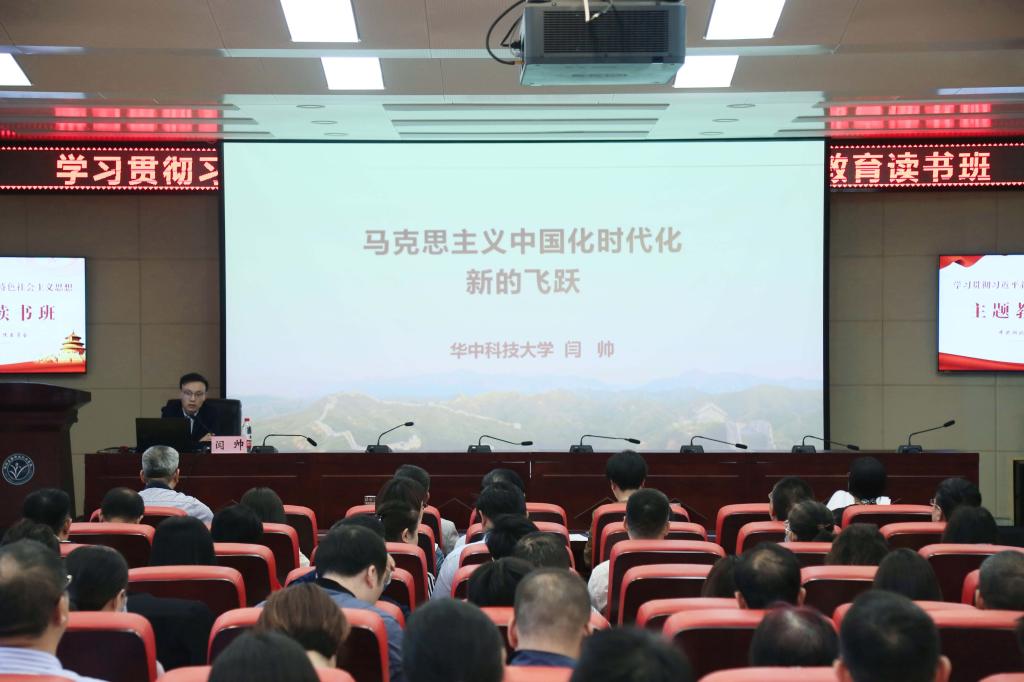 开班式后,开展了读书班第一次学习,省委讲师团成员闫帅老师作了题为《马克思主义中国化时代化新的飞跃》的专题辅导报告。