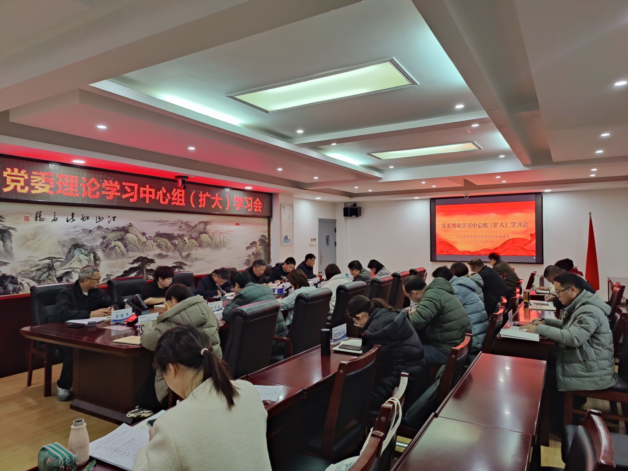 12月31日,学校召开党委理论学习中心组(扩大)学习会,专题学习习近平文化思想,校党委书记田曙曦主持会议并讲话。