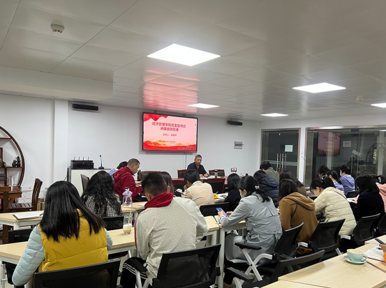 经济管理学院党支部书记吴国平以党风廉政为主题在全院范围讲党课。吴国平从两个方面进行讲解。一是深刻理解习近平总书记全面从严治党用于在路上的科学论断:提高政治站位,筑牢党风廉政建设和反腐败意识。二是以案说纪,建设不敢腐、不能腐、不想腐的廉洁环境。必须要抓好对党章党规党纪、国家法律法规的学习,要逐条逐句学,原原本本学,全面、透彻、深入地领会其精神实质,筑牢拒腐防变的思想防线,仅是知道明白该做什么,不该做什么还不够,还必须将形成的理念用于实践,做到知行合一,在工作、生活和社会交往中自觉践行。