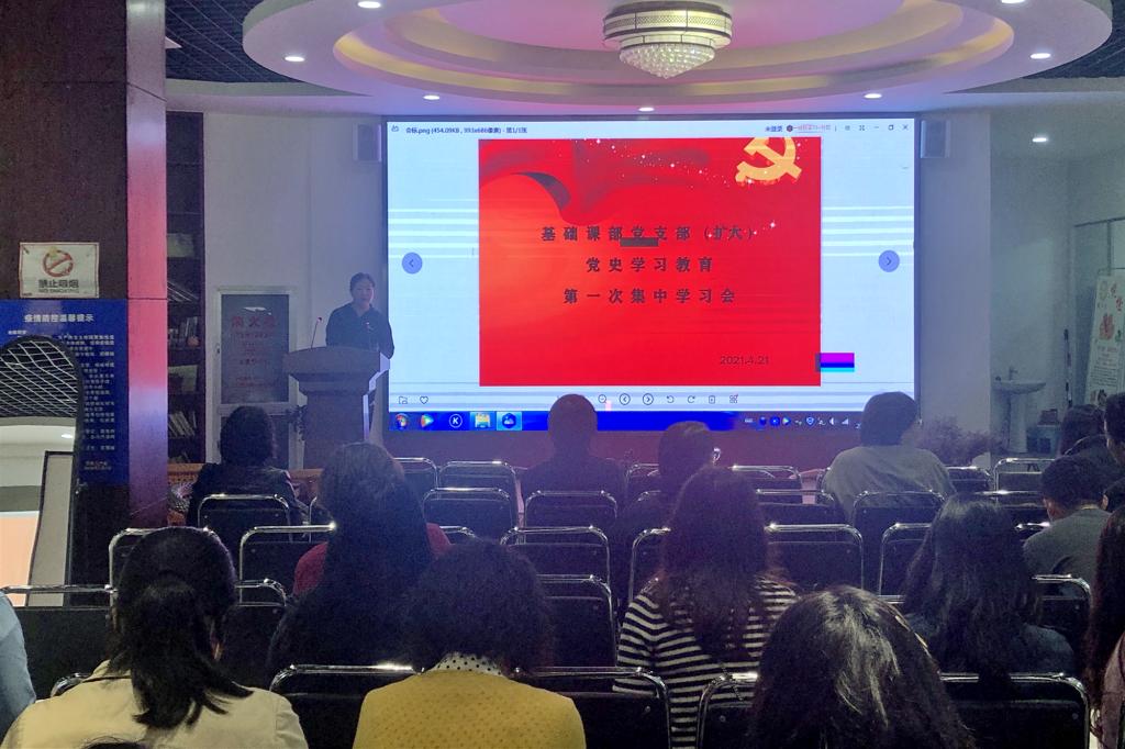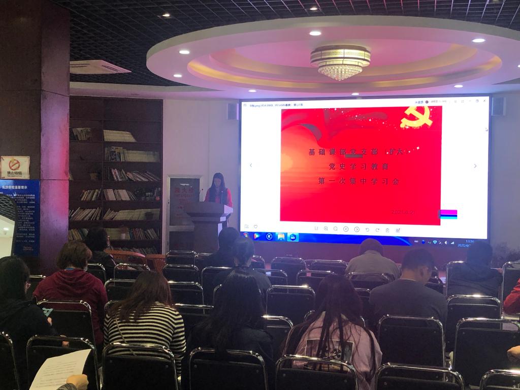 4月21日下午,基础课部党支部在学校创业中心大厅开展“铭记苦难辉煌 承载责任担当”党史学习教育第一次集中学习。课部全体教职工参会。