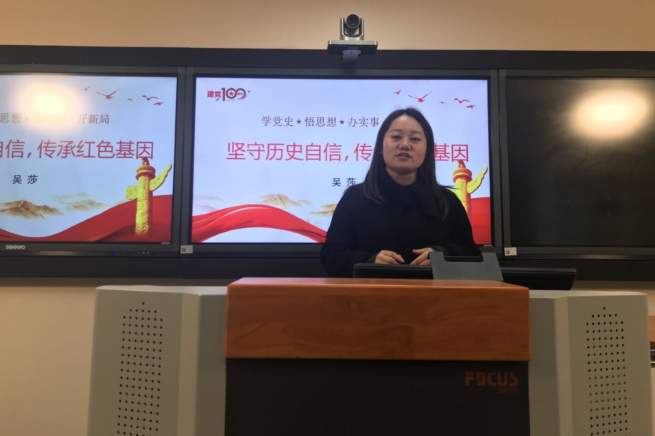 支部党员吴莎、李娜同志分别讲党课。吴莎同志围绕如何学习党史进行了一次生动的党课,她以学习党史应遵循的原则——旗帜鲜明反对历史虚无主义,坚持文化自信,传承红色基因为核心进行了讲解。李娜同志围绕遵义会议这一重大历史事件,深入讲解了遵义会议的历史背景、主要内容、历史意义与启示。
