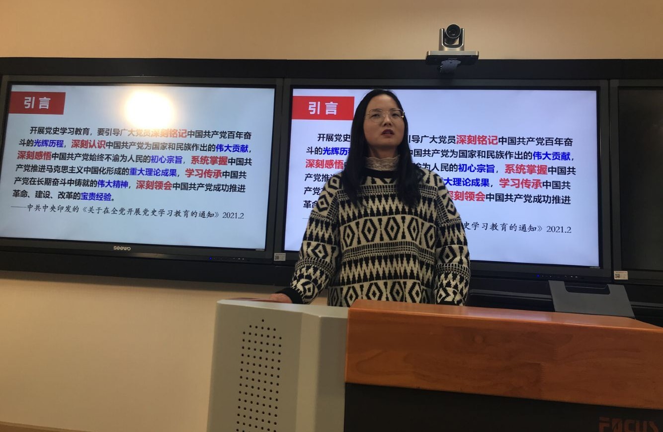 3月18日下午,思政课部党支部在录播室901召开支部(扩大)学习大会,会议的主题是党史教育——支部党员讲党课。会议由柯东林同志主持。