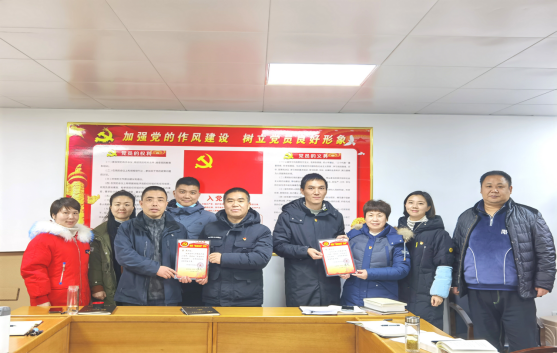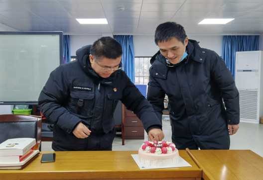 支委委员邓劲松同志和江胜同志分别为余杰同志和程俊同志发放“政治生日”贺卡