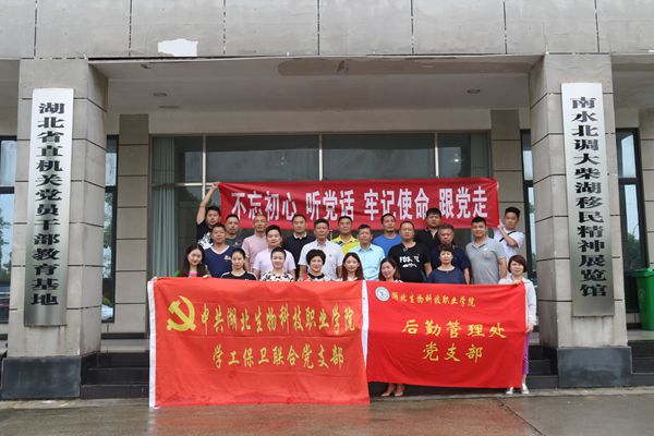 根据省农业农村厅工作部署,学校《关于认真开展好6-7月支部主题党日活动的通知》文件精神,6月21-22日,学工保卫联合党支部、后勤管理处党支部全体党员干部和入党积极分子近30人齐赴荆门大柴湖教育基地开展了“不忘初心听党话 牢记使命跟党走”主题党日活动,校党委委员、副校长周元才、杨艳芳以普通党员身份参加了活动。