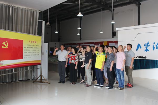 全体党员在基地展览馆,面对鲜红的党旗,重温了入党誓词。