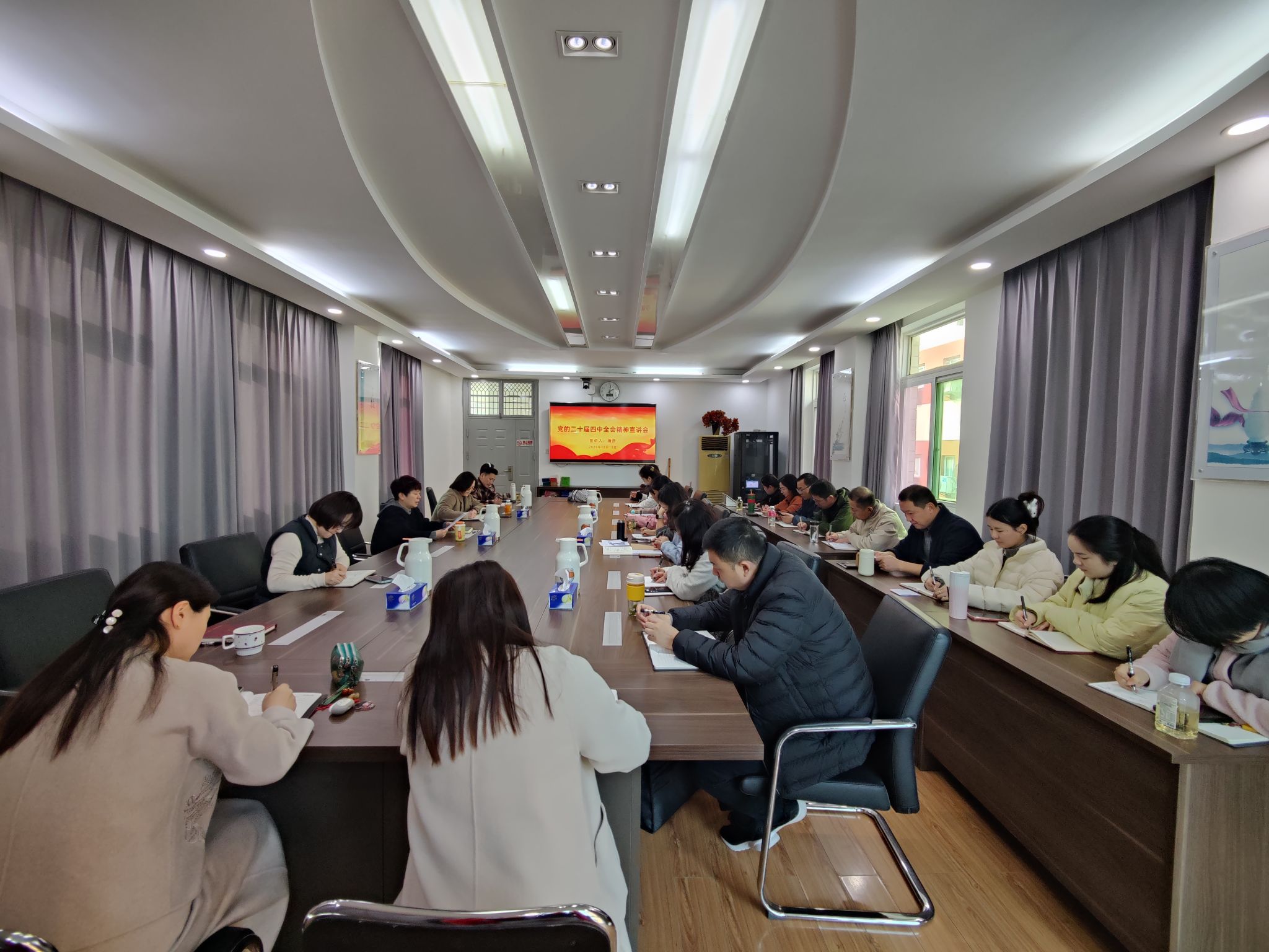 根据校党委统一部署,12月18日,校党委副书记、纪委书记潘彦在行政楼310会议室为党政办党支部、思政课部党支部宣讲党的二十届四中全会精神,进一步推动学习贯彻全会精神在校内走深走实。