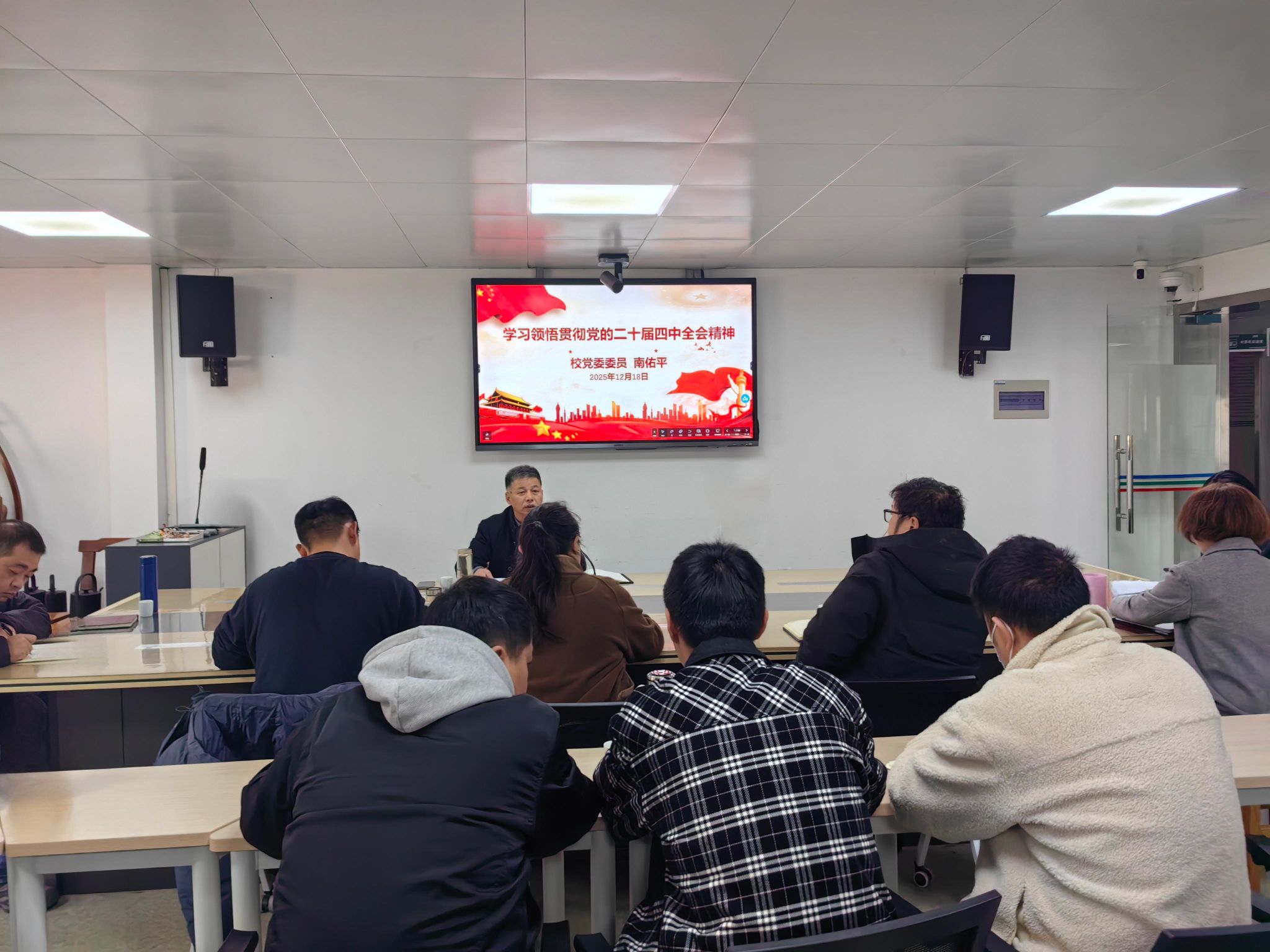 12月18日下午,校党委委员、学工处处长南佑平以《学习领悟贯彻党的二十届四中全会精神》为主题,为经济管理学院党支部、学工保卫联合支部宣讲党的二十届四中全会精神。