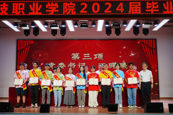 学校党委副书记、纪委书记潘彦宣读了《湖北生物科技职业学院关于表彰2024届优秀毕业生的决定》,她勉励受到表彰的同学发扬成绩,戒骄戒躁,再接再厉,在将来的工作岗位上做出更大的成绩,为母校增光添彩。她要求全体在校生以获荣誉的学长学姐为榜样,勤奋学习,积极进取。