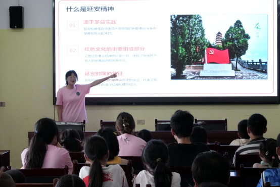 宣讲活动中,宣讲团成员们化身历史的讲述者,以满腔的热情和生动的语言,将“两弹一星”背后鲜为人知的故事娓娓道来。从科学家们放弃海外优渥条件毅然回国的决心,到他们在戈壁滩上默默奉献、攻坚克难的身影,每一个细节都让孩子们感受到了那份对国家和民族深沉的爱。同时,宣讲团还巧妙地将延安精神和井冈山精神融入其中,通过讲述革命先辈们艰苦奋斗、勇于牺牲的感人事迹,激发了孩子们对红色文化的认同感和自豪感。