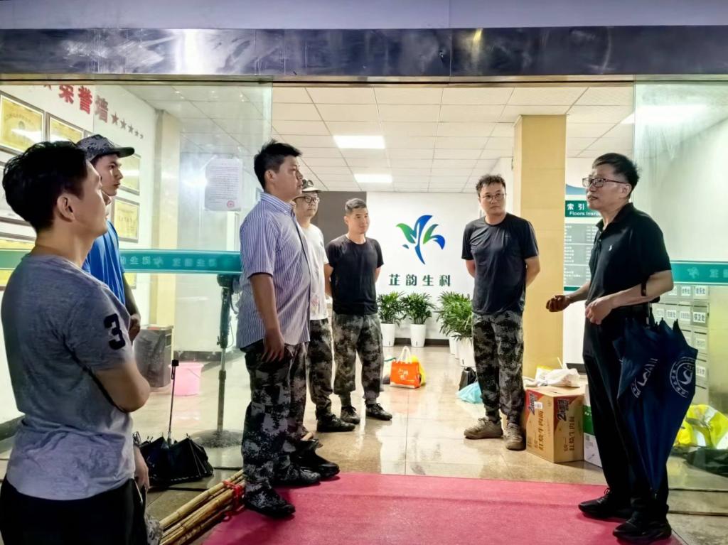 7月1日晚,校党委书记田曙曦在防汛巡查值守工作队出发前为队员们作动员