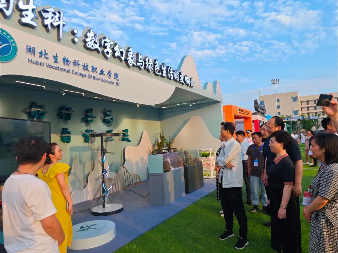 教育部党组成员、副部长、总督学王嘉毅、湖北省委常委、襄阳市委书记王祺扬、湖北省教育厅党组书记、厅长周静等领导在我校展位驻足并给予高度评价,校长龚伏廷介绍展位内容