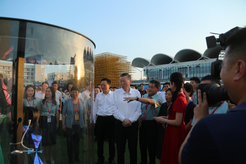 经过4天现场的搭建、调试等准备工作,学校在开幕式的展出现场效果震撼,得到了各级领导的驻足关注及观众的广泛好评并吸引了多家媒体采访,现场参会人员纷纷体验、合影。
