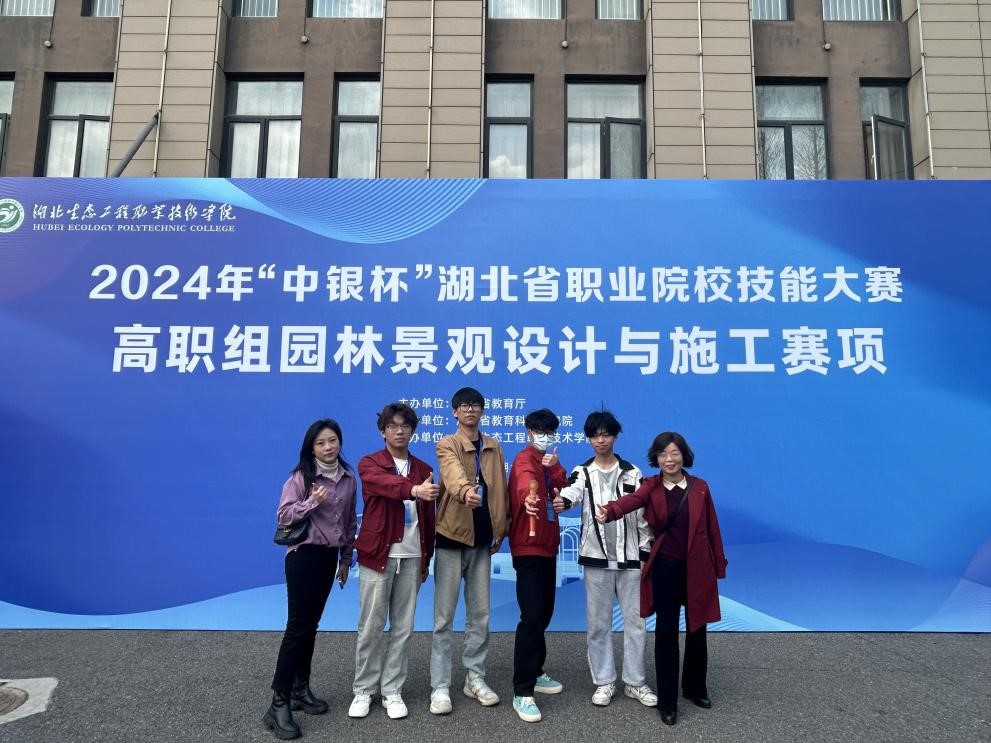 3月8日至14日,2024年“中银杯”湖北省职业院校技能大赛高职组园林景观设计与施工赛项在湖北生态工程职业技术学院举办。经过激烈比拼,最终学校园艺园林学院2023级园林技术专业雷斌斌、柯朝振、张喆、祝奇等4名学生获得团体二等奖,唐海燕老师荣获教师个人全能赛三等奖。