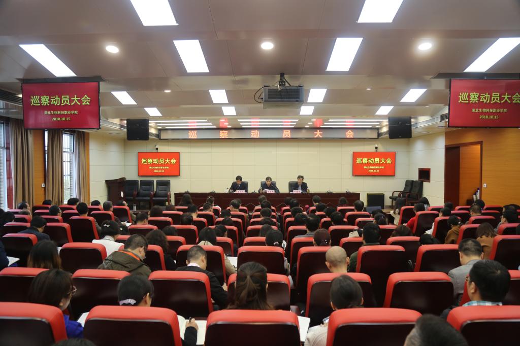 10月15日上午,学校在1号教学楼601学术报告厅召开巡察工作动员大会。省农业厅巡察组成员,校领导、副科级及以上中层干部、全体行政人员、教师代表、辅导员代表和离退休职工代表参会。会议由校党委副书记、校长龚伏廷主持。