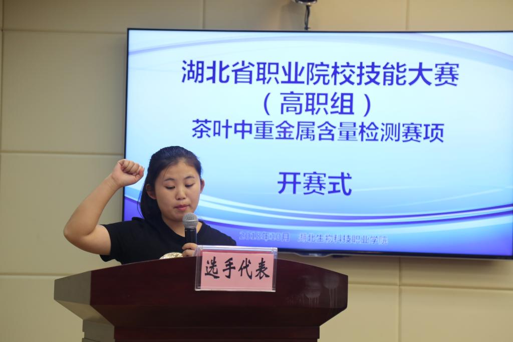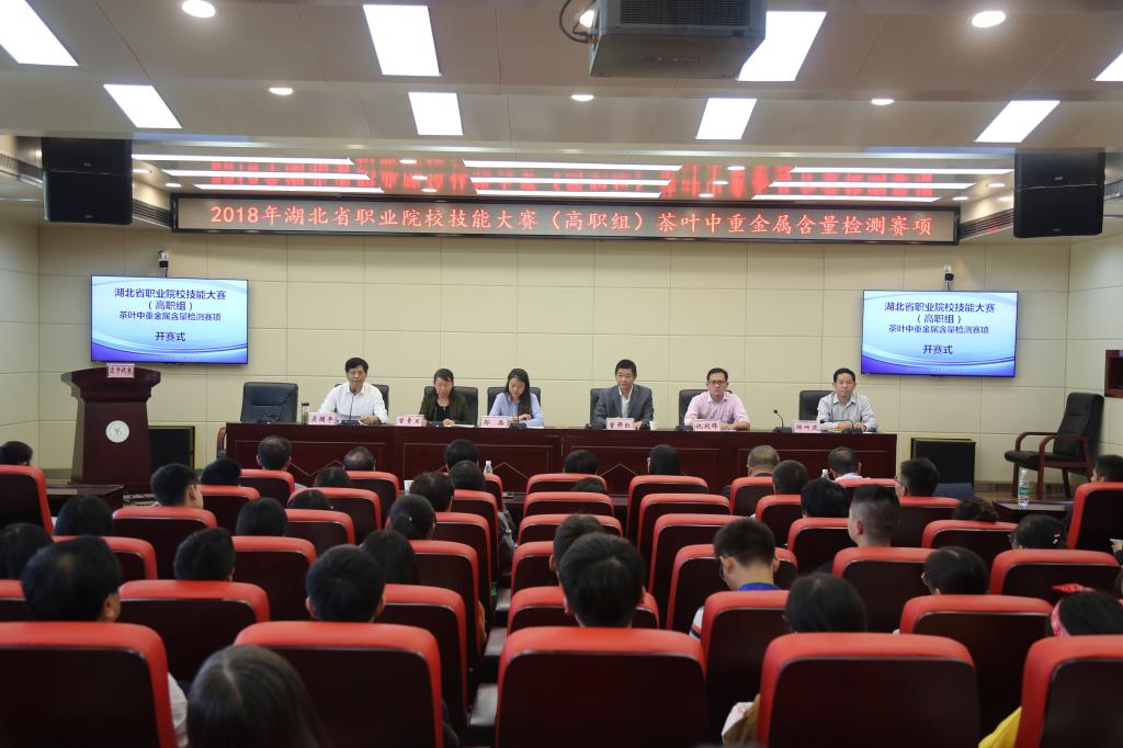 2018年10月12日下午,由湖北省教育厅、湖北省农业厅主办2018年湖北省职业院校技能大赛(高职组)——茶叶中重金属含量检测赛项开幕式在我校举行。参加此次开幕式的有赛项执委会的领导,专家组和裁判组的全体成员以及来自湖北省13个职业院校代表队的52名选手。开幕式由我校党委委员、教务处处长吴国平主持。