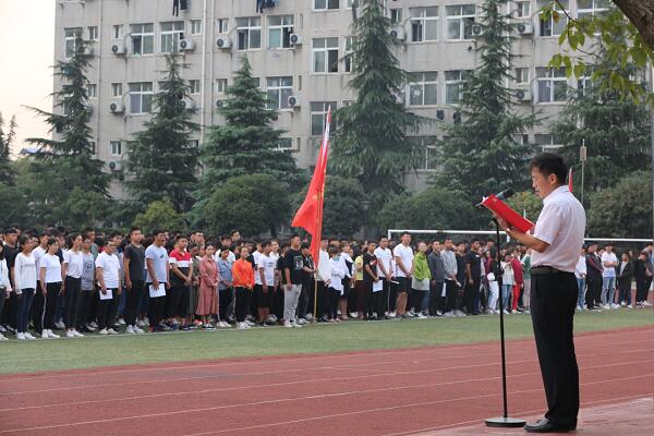 学校党委书记田曙曦同志在升旗仪式上讲话。他与广大师生共同回顾了共和国成立69年来所取得的历史成就和丰功伟绩,一同学习和重温习近平总书记在北京大学师生座谈会以及全国教育大会上的讲话精神。勉励大家加强品德修养,培养博大的家国情怀,要在增长知识上下功夫,沿着求真理、悟道理、明事理的方向前进。他代表学校党委,希望全校教职员工关爱学生,立足岗位,勇于奉献,以身作则,廉洁自律,在“如何引导同学们健康成长,成人成才”上出贡献;希望同学们,热爱祖国,努力学习,团结友爱,尊师重道,遵纪守法,在“先成人,再成才;学知识,学做人”上多努力。最后,他代表全校师生衷心祝福我们的祖国繁荣昌盛,蒸蒸日上。
