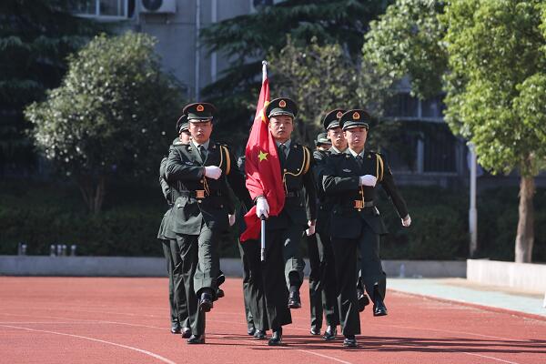 学校国旗护卫队是根据《中华人民共和国国旗法》、《中华人民共和国教育法》、《中华人民共和国国防法》等法律规定,经过在全校学生中选拔,由政治素质高、军事素质好、学习成绩优、组织纪律强的25名学生组成。秋季开学以来,已完成了2018级新生开学典礼和军训汇报表演活动中的升国旗仪式,得到了全校师生和承训教官的高度评价。