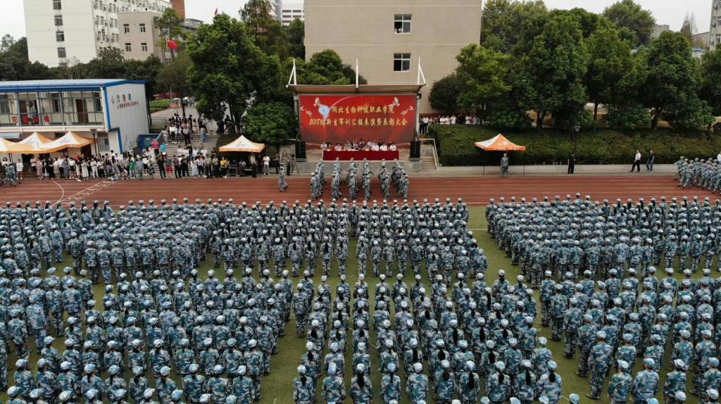 微风正好,涤荡如火热铸豪气;方阵列列,踏步英武雄姿赞青春。9月21日上午9点,2018级新生军训汇报表演暨表彰大会在西苑足球场举行。大会由党委副书记鲁性贵主持,国防科技大学信息通信学院教务处处长张炎明大校、学院联合作战信息通信系主任张其增上校、全体承训官兵,湖北生物科技职业学院在校领导、各部门负责人、各二级学院分管学生工作副院长、全体辅导员和3000余名新生出席此次会议。