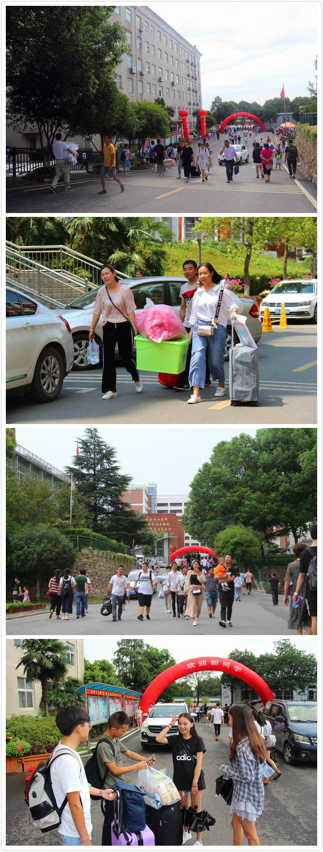 金秋九月,是果实成熟的季节,更是孕育希望、放飞梦想的时节。第一批00后学生们满怀着期待和憧憬,举家千里来到学校报到。学校以整洁的校园、顺畅的交通、周到的服务、热情的面貌迎接着2018级新生们的到来。
