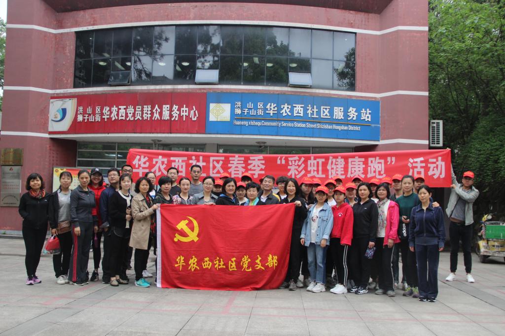 2018年4月13日上午九点整,我校教务联合党支部、党政办支部、财务支部、人事工会支部、园艺支部、思政课支部六个支部党员与华农西社区联合开展了党员进社区活动———健康彩虹跑。