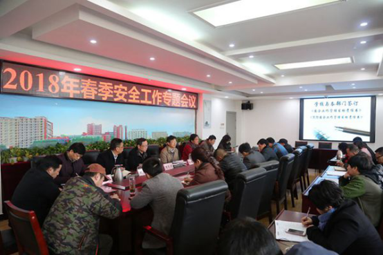 校长龚伏廷同志强调,全体同志要认真学习习近平总书记关于安全生产的重要思想以及国家有关安全生产的法律法规。做到以预防为主、防治结合、一岗三责。他要求,2018年安全工作要围绕“六个进一步”着力开展,一是进一步提高认识,牢固树立“安全第一,生命至上”的理念;二是进一步健全机制,层层压实安全稳定第一责任;三是进一步强化教育,有效推进安全文化建设;四是进一步完善制度,着力规范安全教育管理行为;五是进一步加大投入,不断提升安全保障能力;六是进一步抓实工作,全面实现安全教育稳定责任目标。