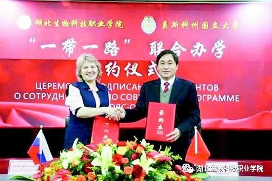 图为:与莫斯科州国立大学签订“一带一路”中俄联合办学合作协议