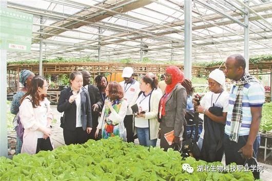 图为:非洲法语国家学员来该校学习设施蔬菜生产技术