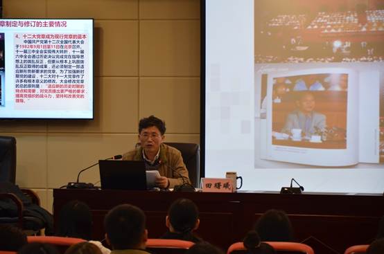 校党委书记田曙曦以 “学习党章、遵守党章,努力做合格党员”为主题,以十九大新修订的党章为主线,为大家上了一堂生动的党课。课上,书记详细的给学员们阐述了党章的性质及其在党的建设中地位;中国共产党历史上党章制定与修订的主要情况;党章的主要内容;党的十九大对党章修订的主要内容。要求学员们全面学习掌握党章的基本内容;自觉践行党员标准;强化政治意识、站稳政治立场;珍惜韶华,脚踏实地,勤奋学习,掌握本领。
