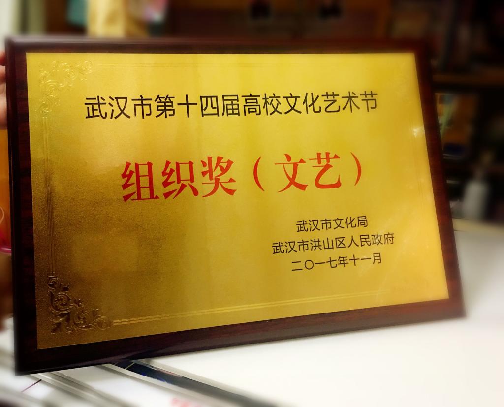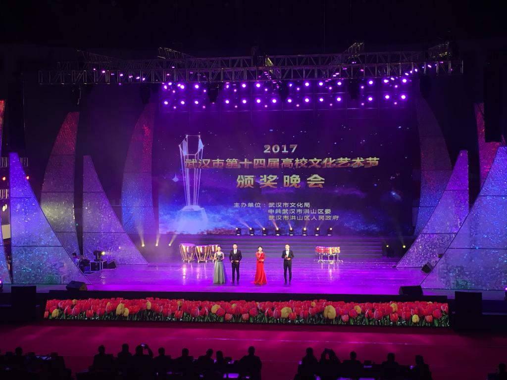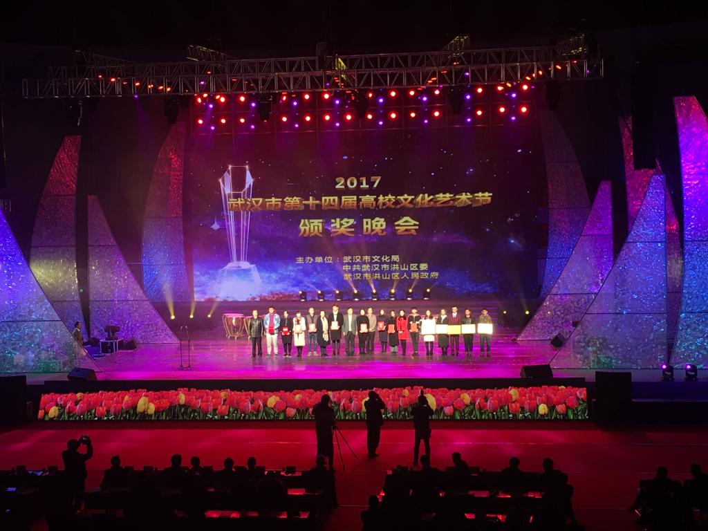 2017年11月30日,武汉市第十四届高校文化艺术节颁奖晚会在洪山区文体中心体育馆落下帷幕,市委宣传部,市文化局,洪山区委、区政府等领导莅临晚会。受我校党委委托,校团委书记邓涛出席晚会并上台领奖。