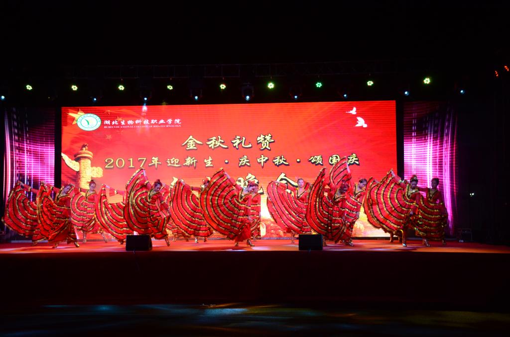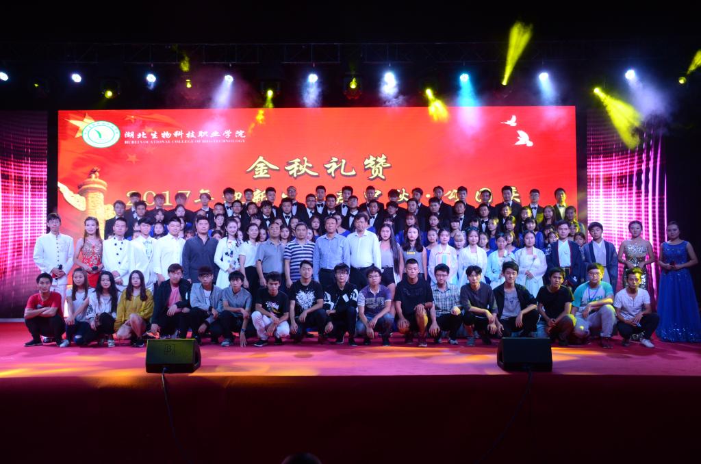 9月28日晚,湖北生物科技职业学院2017年迎新文艺晚会在学校西苑运动场举行。校领导、各部门负责人、各二级学院分管学生工作副院长以及全体辅导员们与近3000名新生一同观看了演出。