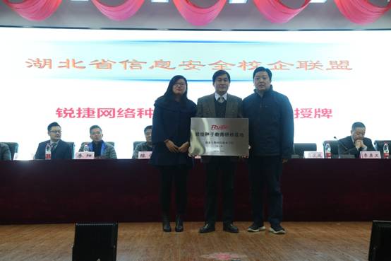 随后,思科(中国)有限公司就全国首批“思科网络安全人才培养基地”为包括我校在内的12家中高职院校授牌,中科软科技股份有限公司就“中科磐云网络安全学院”与5家中职院校授牌,锐捷网络股份有限公司就湖北独家“锐捷网络种子教师研修基地”为我校授牌。