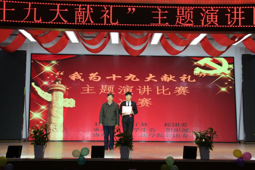比赛过程中,十位选手围绕主题,用各自不同的风格阐述了自己对十九大胜利召开的无限自豪与激动。有的回顾党的光辉历程;有的结合自身实际;有的憧憬幸福的未来。最终,经过一个多小时的精彩比拼,来自动物科技学院的选手韩帆同学以微弱优势赢得了大赛的冠军。