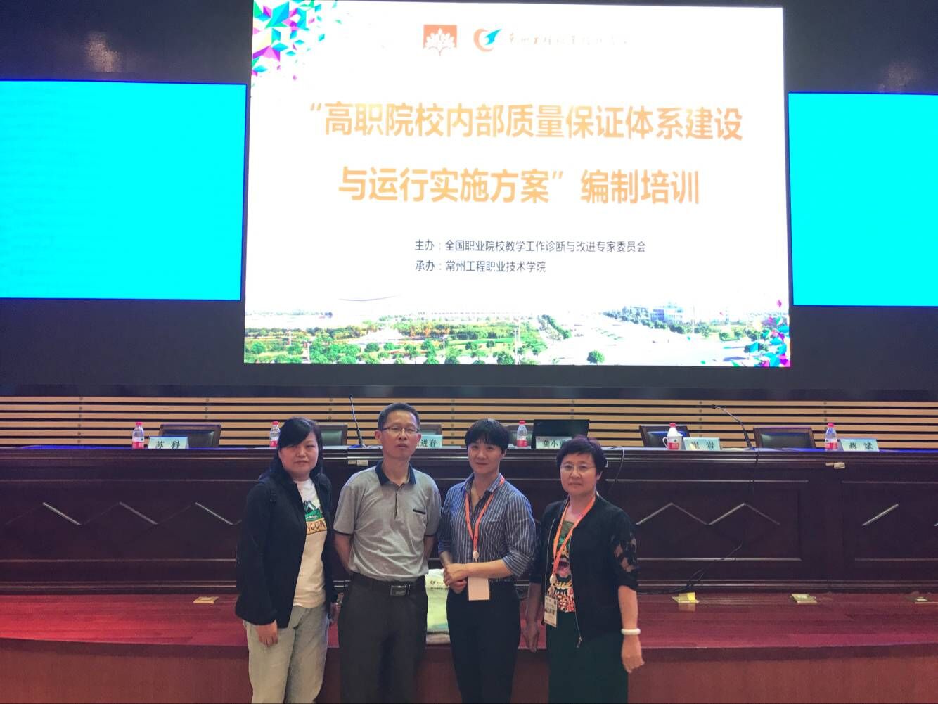 全国职业院校教学工作诊断与改进专家委员会于5月14日至16日在江苏常州工程职业学院举办了第七期“高职院校内部质量保证体系建设与运行实施方案”编制培训班,我校教学督导室蔡国辉主任、陈芬芬副主任、动物(食品)科技学院钱彩虹老师、思政课部吴琼老师前往参加了培训。