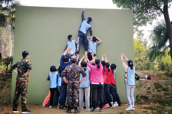 团队全体成员分为“勇士队”和”蛟龙队”,开展了多项难度较高,需要队员合作完成的拓展项目。有每个队员快速穿越软圈比赛的“全身扫描”;有每个队员各牵一根绳子进行颠球比赛的“鼓动人心”;有每一个成员背对其它队员,从高空倒下,其它成员接住的“信任背摔”;有每一个成员相互支持、密切配合,徒手翻越4米高墙的”毕业墙”。各项活动精心设计,旨在培养队员的团队意识、竞争意识、互信意识和拼搏意识。