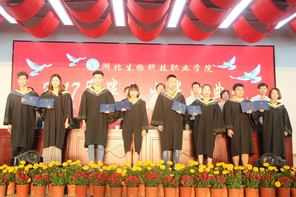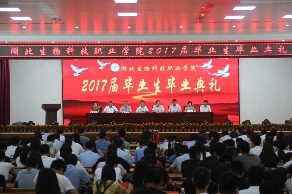 2017年6月15日上午9时整,在雄壮的国歌声中,湖北生物科技职业学院2017届毕业生毕业典礼在大学生活动中心隆重举行。