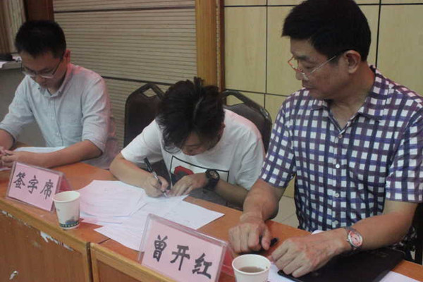 副校长曾开红代表学校与企业、学生分别在合作协议上签字