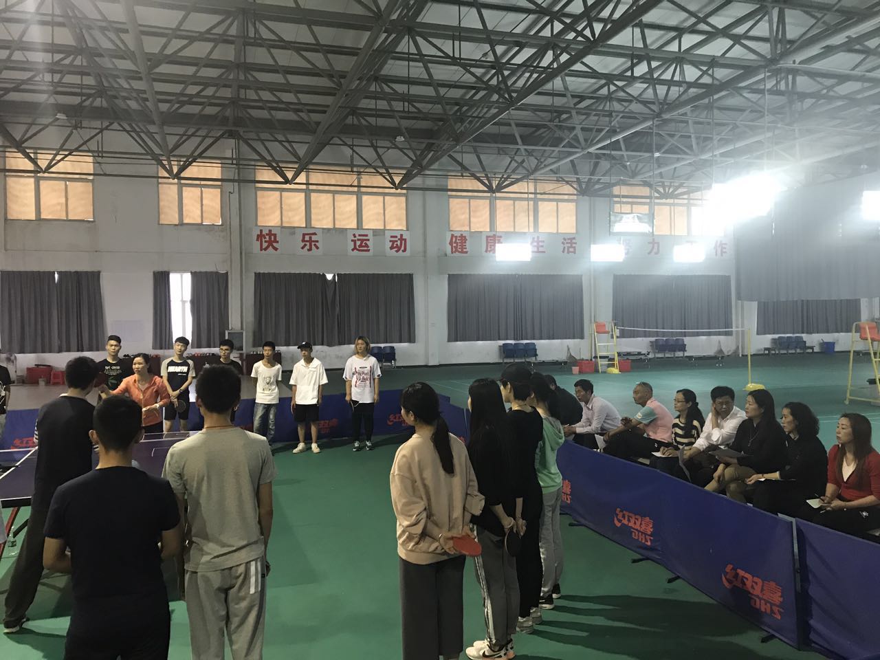 2017年5月3日下午,基础课部体育教研室蔡美琴老师在学校室内体育场进行了大学体育公开课的教学。湖北省大学生体育协会秘书长、武汉城市职业学院网球学院院长彭新社教授,副秘书长、湖北城市建设职业技术学院体育课部主任孙志清教授,武汉轻工职业技术学院公共课部主任周斌教授、体育教研室主任王强教授,我校党委委员王玲、吴国平,基础课部主任林红华及课部部分教师一同观摩了蔡美琴老师《乒乓球》公开课