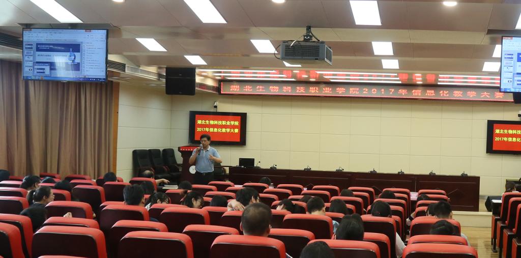 2017年6月19日上午,我校在多功能报告厅3-601开展了湖北生物科技职业学院2017年信息化教学大赛。信息化教学大赛分两个赛项,信息化教学设计赛项和信息化课堂教学赛项。