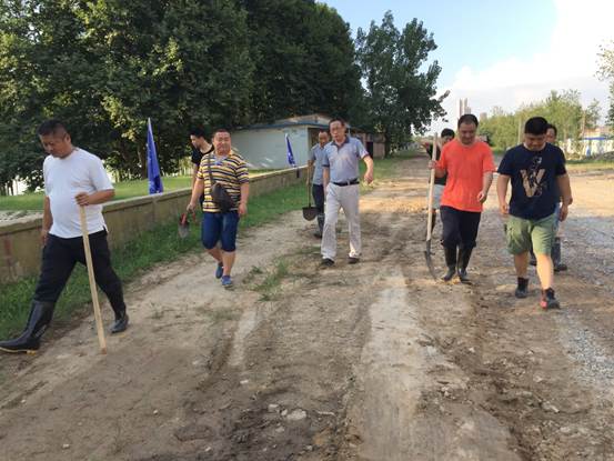 校领导高度重视,立即成立防汛应急领导小组并迅速做出部署,组织各部门由党员、教职工组成的二十余人防汛应急小分队,赶赴武金堤防汛堤段。武金堤55+000-----55+500堤段地势复杂,天气闷热潮湿、泥土纷飞、杂草丛生、蚊虫蛇鼠乱窜,条件十分恶劣。到达的第一晚,防汛应急小分队在没有任何物质保障的恶劣条件下,不畏困难,赤膊上阵,迅速投入到值守排查的工作中。