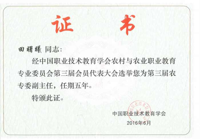我校田曙曦书记当选第三届农专委副主任