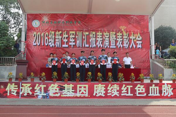 我校隆重举行2016级新生军训汇报表演暨表彰大会