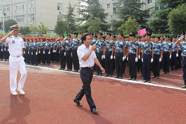 他要求全体新同学要接过“长征精神”的光辉旗帜,适应时代发展的要求,锐意进取,自强不息,真正把爱国之志变成报国之行。今天为振兴中华而勤奋学习,明天为实现中国梦贡献自己的力量!
