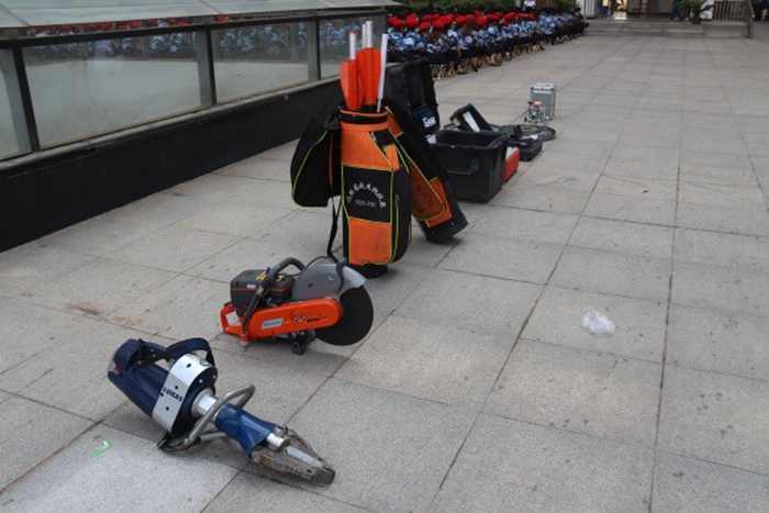 然后,还给同学们展示了一批新配备消防器材。