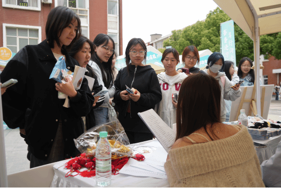 创意手工与沉浸式体验活动同样备受欢迎。创意书签制作摊位前,同学们发挥奇思妙想,用画笔与材料打造出一枚枚独具特色的书签,将书香与创意完美融合;诗暖春风,花赠诗意活动吸引大批同学参与,以诗句换鲜花,用诗意传递美好,现场温馨又治愈;“传千年艺韵・作指尖国风”非遗手作体验更是人气爆棚,螺钿、拼豆等传统工艺让大家近距离感受非遗魅力,在动手实践中传承东方匠艺。此外,时光驿站 —— 写给未来自己的一封信活动也吸引众多师生参与,大家提笔写下青春期许与人生目标,封存时光、寄语成长,留下独属于大学时光的温暖记忆。