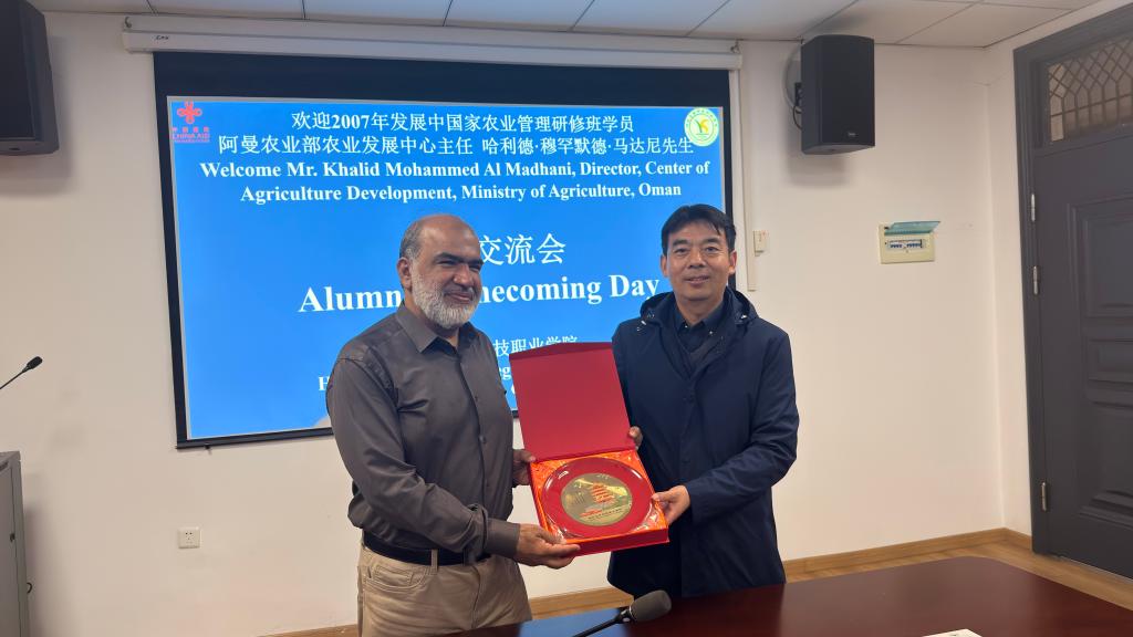马达尼先生与中国的缘分始于2007年,当时年仅30岁,时任阿曼农业部农业发展中心主任的他第一次受中国政府邀请来华参加由国家商务部主办、我校承办的援外培训项目“发展中国家农业管理研修班”;2009年,他又再次回汉参加了为期42天的“畜牧业实用技术培训班”。两次学习的收获对促进马达尼个人成长与事业转折发展起到了关键性作用。2014年进修取得硕士学位后,他重新规划个人事业,积极创业成立公司,主营兽药及农资销售业务,常年定居阿联酋迪拜。本次来华目的之一就是参加2025中国国际农业机械展览会,寻求中国合作伙伴。援外培训是构建国际合作桥梁、推广中国经验、讲述中国故事的重要途径,始终注重实现从“授人以鱼”到“授人以渔”的转变,助力受援国政府及参训学员个人提升自主发展能力。