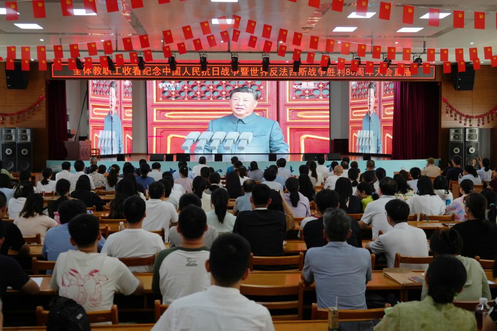 学校组织收看纪念中国人民抗日战争暨世界反法西斯战争胜利80周年大会