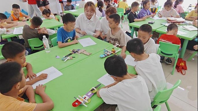 上午时段,志愿者以汉字起源为切入点,设计象形字猜谜游戏。从"日、月、山"等基础字形识别,逐步升级至组合字挑战,引导孩子们探索文字演变规律。活动尾声,孩子们共同完成"普通话推广"主题黑板报创作,用彩色粉笔描绘对语言文化的理解。