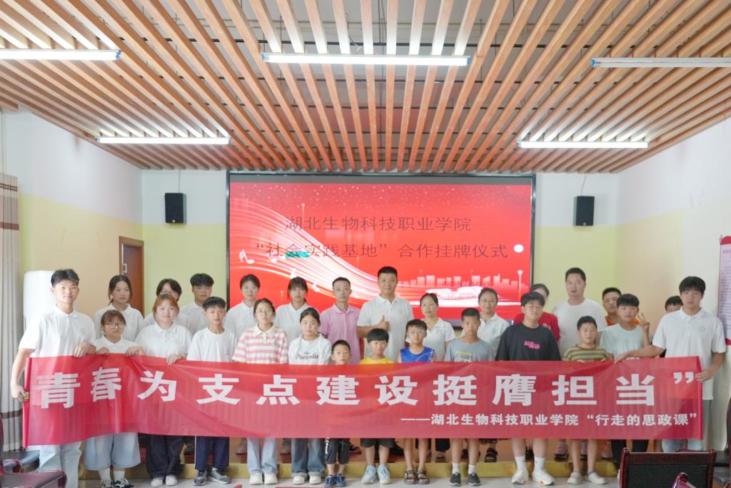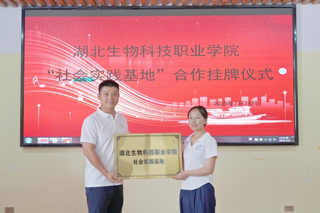 仪式现场,校团委书记邓涛,驻村工作队代表、社区副书记龙维分别作为双方代表参加活动。双方明确将以基地建设为契机,以“双向赋能”深化合作,通过“知行合一”打造示范性校地合作品牌,为乡村振兴贡献青年力量。随后,双方代表共同为“湖北生物科技职业学院社会实践基地”揭牌。