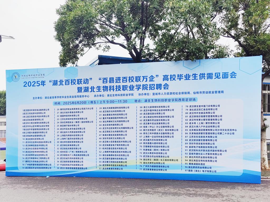 为深入贯彻落实党中央、国务院关于高校毕业生就业工作的决策部署,积极响应“才聚荆楚·共建支点·百县进百校联万企”就业促进专项行动,进一步搭建高校毕业生与用人单位之间的高效对接平台,推动毕业生实现高质量充分就业,学校于6月20日举办2025年“湖北百校联动”“百县进百校联万企”高校毕业生供需见面会暨湖北生物科技职业学院招聘会。