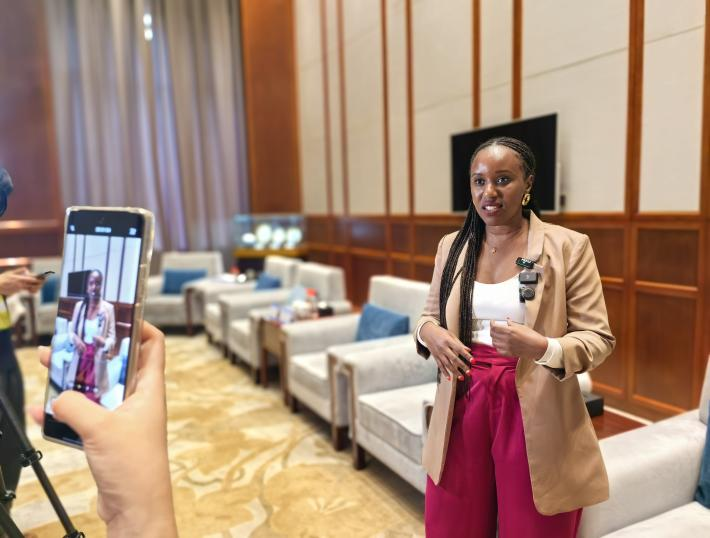 6月12日下午,代表团走进中国湖北-非洲经贸合作对接会现场。会议期间,来自卢旺达私营部门联合会的埃内斯特・穆尼亚恩托雷先生(ErnesteMunyantore)和卢旺达保护农业研究所的普萝西・乌穆托尼女士(Prossy Umutoni)作为研修班学员代表,接受了湖北卫视及多家媒体记者专题采访。两位学员分享了在我校的学习经历与收获,高度赞扬学校在农业技术培训、知识传授等方面给予的帮助,展现出中非教育合作在促进技术交流与人才培养上的重要意义,也为湖北与非洲地区的经贸合作增添了人文交流的生动注脚。